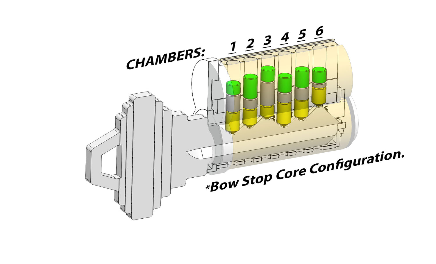 8C04-SFIC Pins like a Schlage with Chambers 1 to 6 referencing from bow to tip. 8C04-SFIC operates on its own exclusive 8C04 pins. Standard Schlage Bottom pins are not Compatible with 8C04.